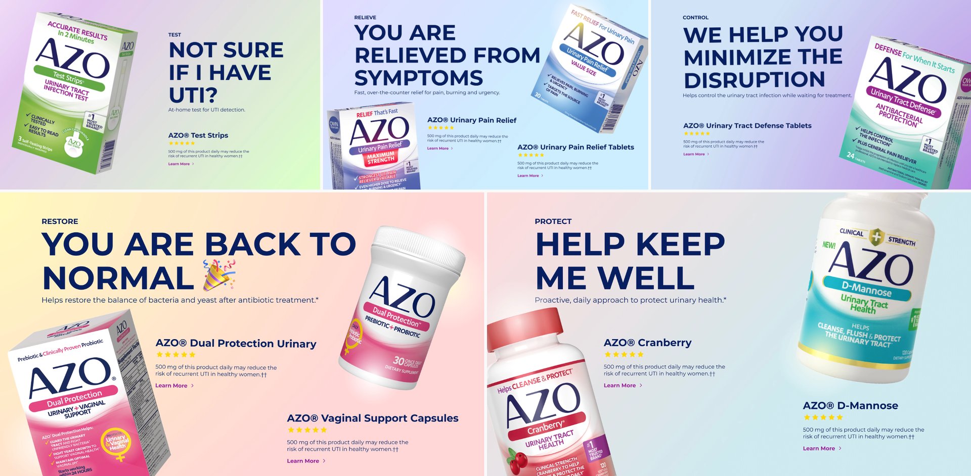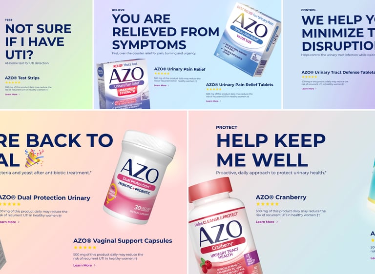 Design led the UX/UI and branding for the AZO Products e-commerce experience, creating a modern storefront that aligns with the brand’s health and wellness positioning